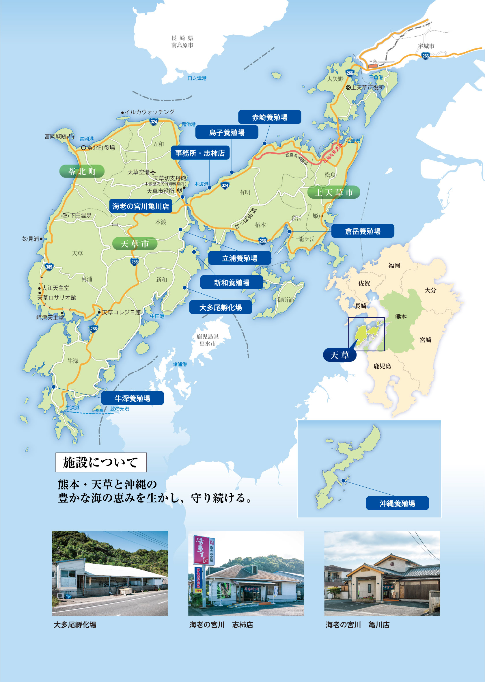 | 1968年 | 倉岳町に養殖場を開設。(当時天草郡) |